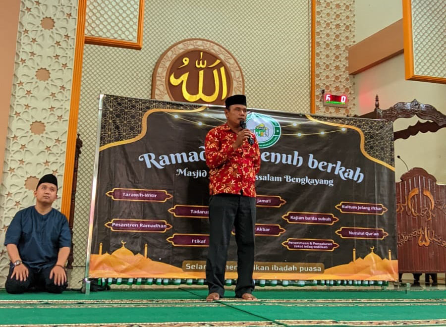 Kepala Kantor Urusan Agama kecamatan Bengkayang, bapak Imam Subakir membuka Pesantren Ramadhan Masjid Jami Babussalam Bengkayang tahun 1445 H / 2024 pada hari Jumat 15 Maret 2024 / 4 Ramadhan 1445 H. Dalam sambutannya kepala KUA menyampaikan pentingnya pendidikan agama dikalangan remaja khususnya di kecamatan Bengkayang mengingat tantangan yang dihadapi saat ini oleh remaja dalam pergaulan keseharian sangatlah komplek hingga perlu dibentengi dengan akhlaq yang baik. Dalam acara pembukaan yang turut dihadiri oleh Penasehat DKM bapak HB Sudjoko, pengurus DKM dan Guru agama Islam , Kepala KUA juga menyambut baik program yang diusung oleh DKM Masjid Jami Babussalam dan berpesan agar seluruh santri dapat mengikuti pelajaran dengan sungguh-sungguh dari awal hingga akhir penutupan kelak. Adapun materi dalam pesantren Ramadhan 1445 H akan disampaikan oleh beberapa Ustadz dilingkungan Bengkayang dengan materi fiqih, Aqidah, Akhlq, Toharoh dan materi khusus publik speaking dan pembuatan konten. Pesantren Ramadahan kali ini diikuti oleh 38 Santri SMP, MTS dan SMA di kecamatan Bengkayang dan dikoordinir oleh kak Tri akan berlangsung selama 9 kali pertemuan setiap hari Jumat, sabtu dan ahad ba’da sholat Ashar.